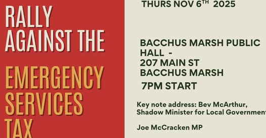 Rally Against the Emergency Services Tax -Bacchus Marsh, Thursday 6th November, 7pm