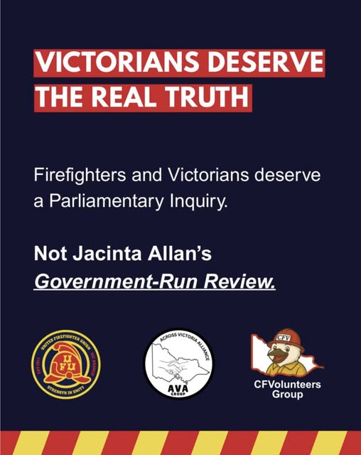 A coalition of career and volunteer firefighters are calling for an urgent Parliamentary Inquiry into the January 2026 Victorian fires, warning that the scale of devastation now unfolding was foreseeable and preventable after years of government underinvestment in fire services, ageing fire trucks and ignored warnings from firefighters.