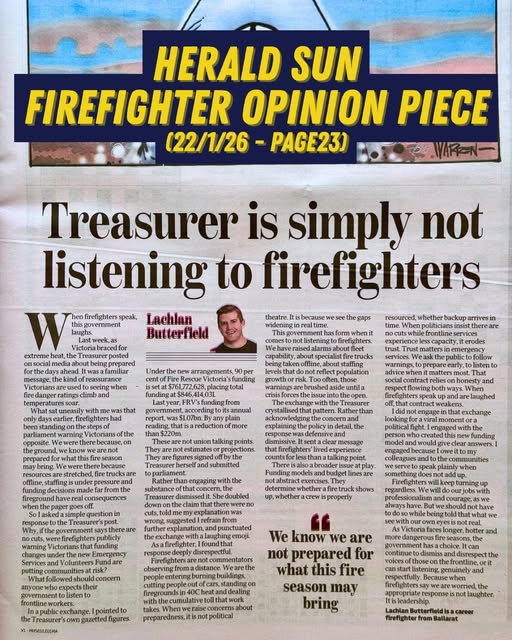 Firefighters raised legitimate concerns about safety and funding — backed by the government’s own numbers — and were met with dismissal and ridicule. As highlighted in a recent Herald Sun opinion piece, Treasurer Jaclyn Symes even laughed at these very questions. This isn’t leadership — it’s arrogance, and it puts community safety at risk