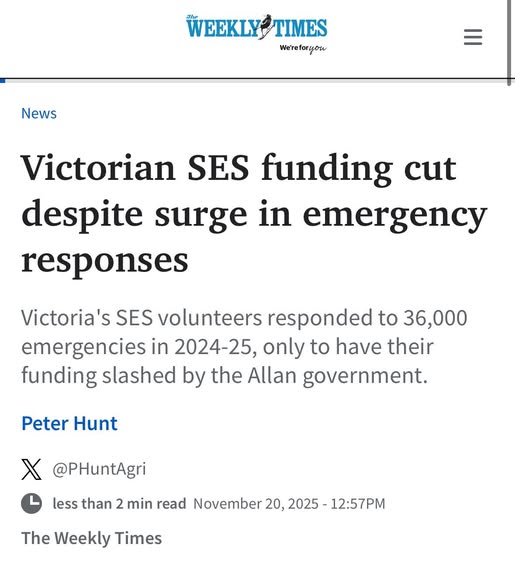 While firefighters prepare to battle a high-risk bushfire season with depleted capacity and failing equipment, Jacinta Allan’s government has collected $600 million through the Emergency Services and Volunteer Fund—a levy introduced in their name—yet frontline agencies have seen no meaningful improvement in equipment or safety. Firefighters across Victoria are asking the same question: Where has this money gone?