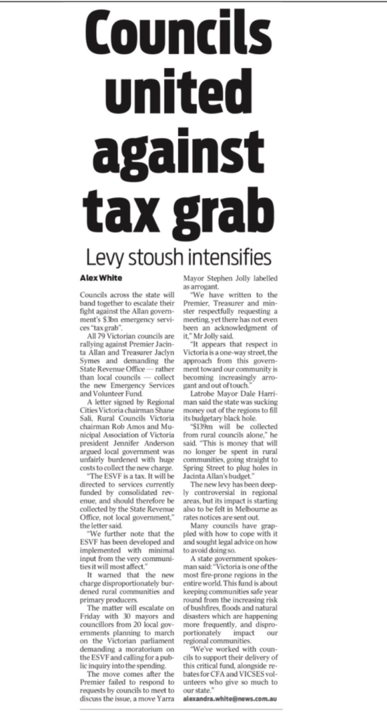 Banding Together – Rural, Regional and Metropolitan Councils Unite Against Allan Government’s Controversial Emergency Services Levy