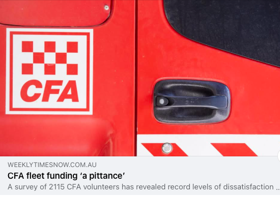 Volunteers have dismissed the Victorian government’s $10m for CFA tanker replacement a “pittance” compared to the $1.53bn it will collect in emergency services tax.
