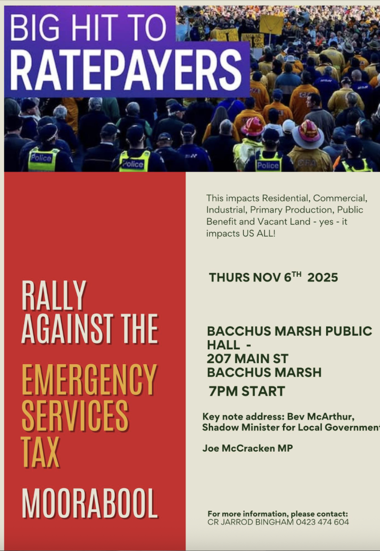 Rally Against the Emergency Services Tax -Bacchus Marsh, Thursday 6th November, 7pm