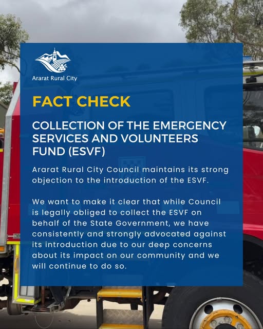 Ararat Rural City Council maintains its strong objection to the introduction of the Emergency Services and Volunteers Fund (ESVF).