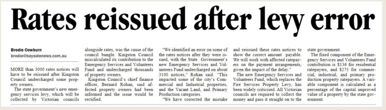 We want to make it clear that while Council is legally obliged to collect the ESVF on behalf of the State Government, we have consistently and strongly advocated against its introduction due to our deep concerns about its impact on our community and we will continue to do so.