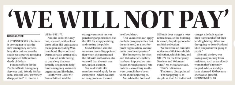 SES FRV CFA Cuts – Your Tax Money Is’nt Going Where The Treasurer, Premier & Minister Say! So We Won’t Pay