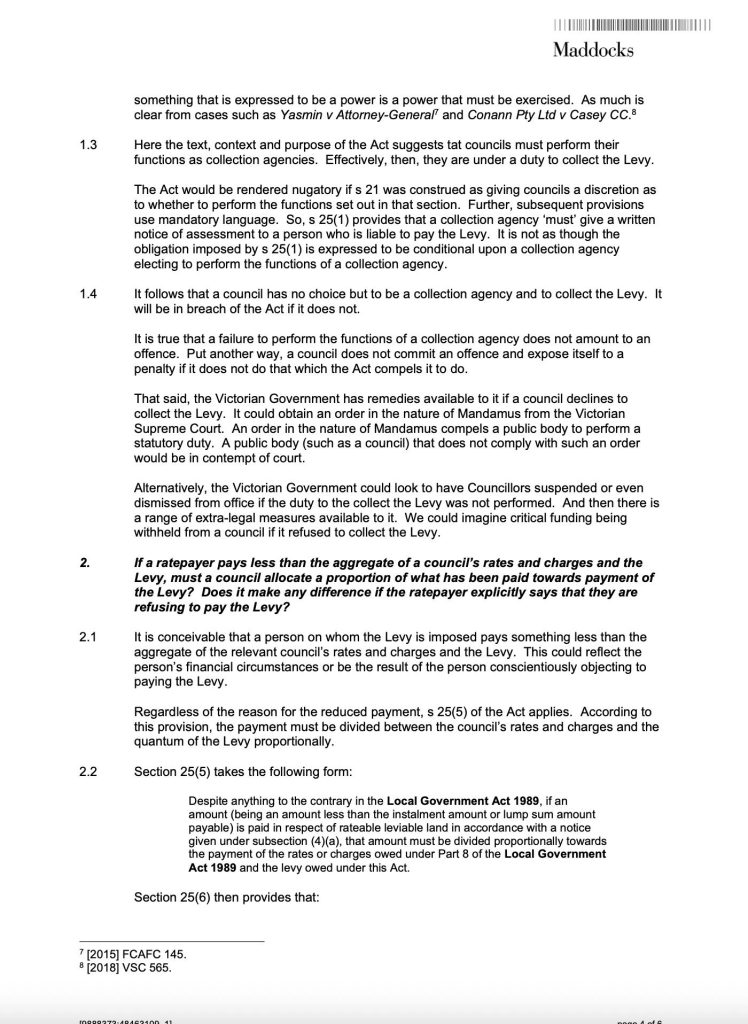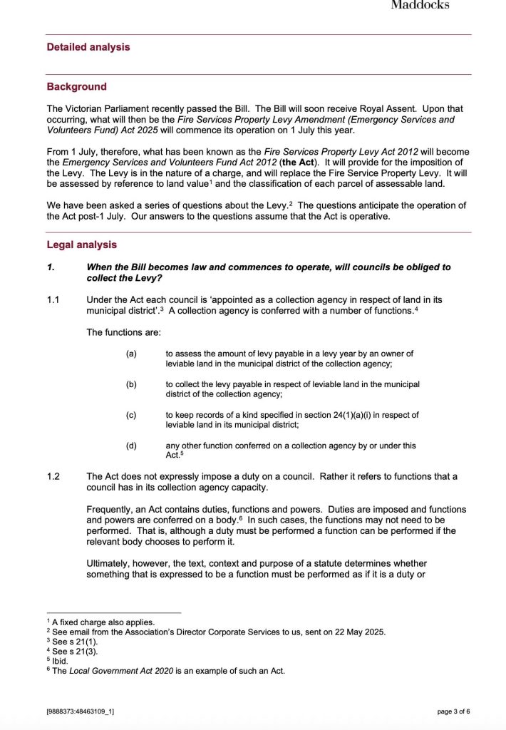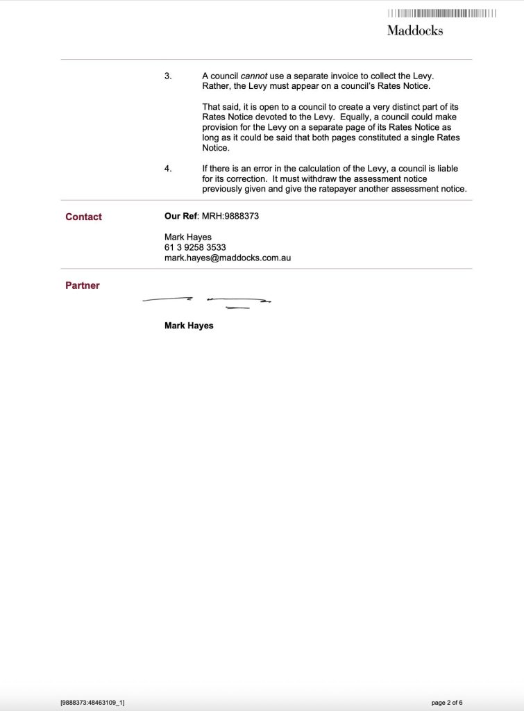 MAV then forwarded that advice to Councils across Victoria.
