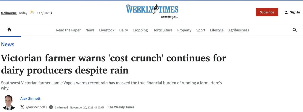 Victorian Farmers Warn Treasurer Symes and Premier Allan the Allan Government Induced Cost Crush is at Crisis Point